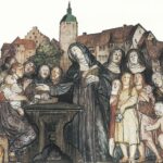 Elisabeth af Thüringen (1207-1231) var datter af Kong Andreas II af Ungarn og blev allerede som barn sendt til Thüringen og lovet til landgrevens søn, som hun blev gift med, da hun var 14 år gammel. Ved hoffet satte hun sit præg på livet i Wartburg: I hungeråret 1225 åbnede hun byens forrådskamre og delte mad ud til de fattige. Da hendes mand døde blev det svært for hende at gennemføre sine visioner og hun valgte radikalt at bryde med hoffet og forlade Wartburg med sine børn. Efter nogen tid fik hun dog udbetalt arven efter sin ægtemand og byggede for formuen et hospital, hvor hun selv, indtil sin død, arbejdede som sygeplejerske. Elisabeth døde allerede i 1231 24 år gammel.