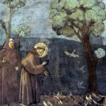 Frans af Assisi (ca. 1142-1226) var søn af en rig tekstilhandler i Assisi og vant til at leve livet uden at bekymre sig. Men en dag mødte han en spedalsk og fik en indskydelse til at komme ham i møde, selvom spedalske på det tidspunkt var mennesker, som alle andre gik en stor bue udenom af frygt for smitten. Frans steg af hesten og gik hen og kyssede den spedalske og han opdagede hvor megen kærlighed fra Gud, han var kaldet til at give videre. Til sin riges far store fortvivlelse gav han sig til at dele ud til de fattige og mange fulgte ham. I løbet af få år blev det en stor bevægelse og franciskanerne bredte sig i hele Europa. Hvor man i klosterlivet på den tid ellers mest var optaget af at dyrke Kristus som den sejrende op ophøjede, identificerede franciskanerne sig med den fattige lidende Kristus. I vores tid aktualiserede pave Frans i sit pontifikat 2013-2025 den hellige Frans; dels ved at understrege kirkens kærlighed til de fattige, de udstødte og de marginaliserede, men også ved sit engagement i naturens og klodens vel. Titlen på pave Frans´ encyclica “Laudato si” citerer Solsangen, som er hellige Frans lovsang til naturen.